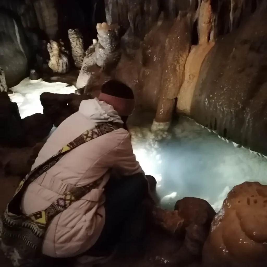 S Srbkinjo sva se (po že opravljenem izpitu iz slovenščine na ravni B2, s katerim je dokazala, kako daleč se da priti s tem jezikom v letu in pol) spustili tudi v notranjost Vilenice. Bili sva očarani nad mnogimi kapniki in atmosfero v jami …