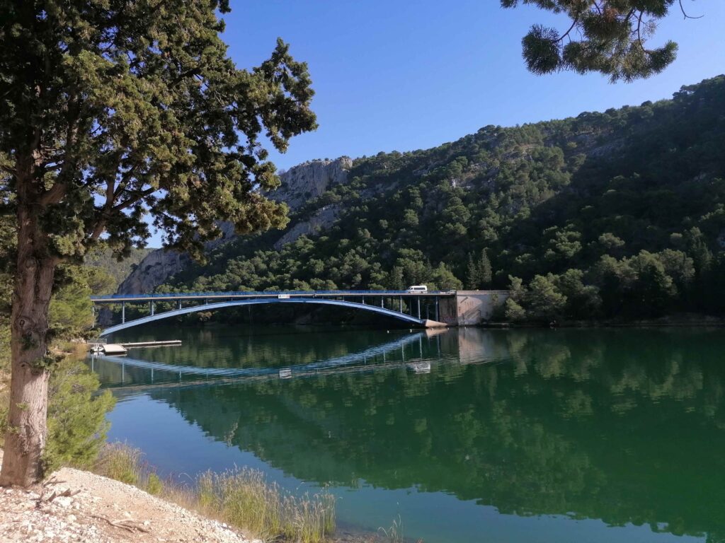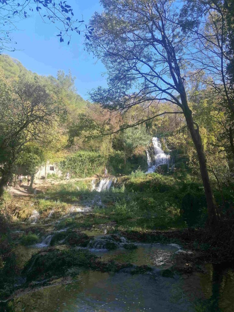 Med sprehodom proti reki sem videla, da bi me mestno parkirišče stalo precej manj – glede na to, da tukaj nisem nameravala ostati ves dan Na pešpoti/kolesarski stezi mimo Skradinskega mosta pa sva srečali tudi precej ljudi. Kako je poleti (sicer s 40 € vredno vstopnico), si niti ne želim predstavljati.