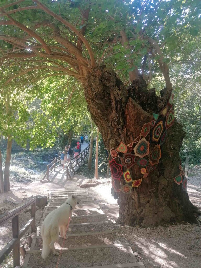 Takoj na začetku mesta me je nek moški usmeril na parkirišče in ker sem videla precej smerokazov za narodni park, sem predvidevala, da je to uradno parkirišče, a sem se uštela. Za ceno 10 € sem tako parkirala v zaprtem kampu in sva najin sprehod začeli po mestnih uličicah do uprave NP, kjer sem kupila vstopnico. Ta v nižji sezoni stane 20 € (za pse brezplačo) in vključuje vožnjo z ladjico ali kombijem, že 2 dni kasneje, novembra, pa bi znašala 7 €, zato neke gneče nisem pričakovala. A sem se uštela tudi tu.