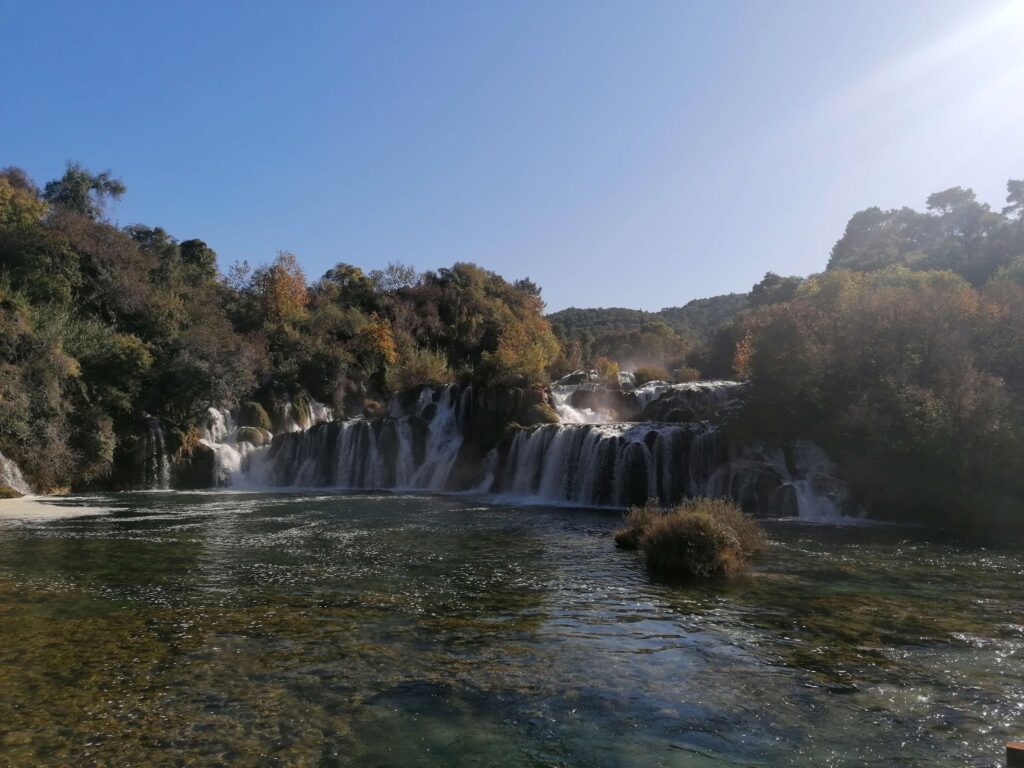 Čudoviti slapovi, še posebno Skradinski buk, prekrasna narava, a za mojo občutljivost in Tarino radovednost preveč ljudi in preglasno bučanje vode, da bi se lahko sprostila in začutila okolje pod površino. Med drugim me je zvedava ter neverjetno družabna leto in pol stara psička ves čas vlekla sem ter tja, kar lep čas pa sem se jezila tudi na svojo naivnost glede parkiranja in izbranega termina obiska …